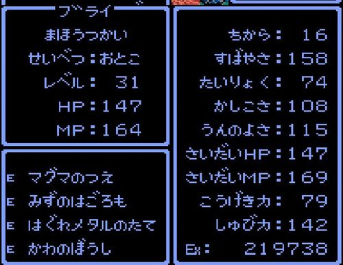 魔法使い・ブライがレベル31にアップ。