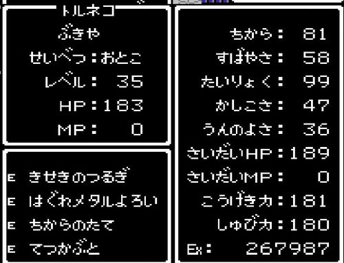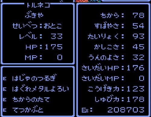 武器屋・トルネコがレベル33にアップ。