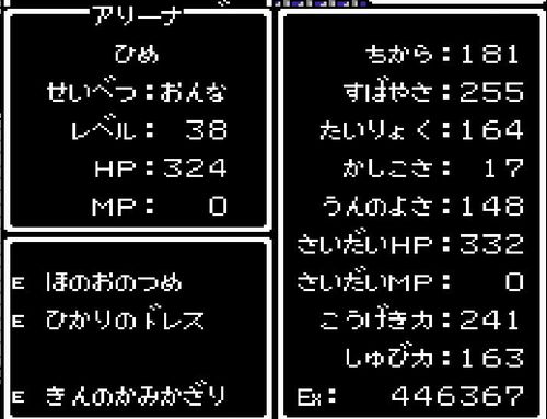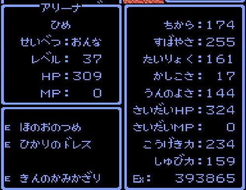 姫・アリーナがレベル37にアップ。