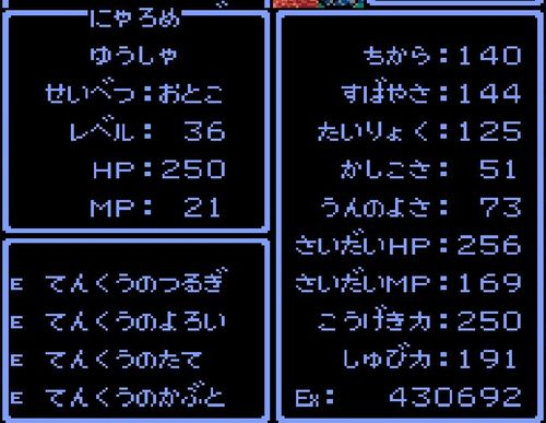 勇者・にゃろめがレベル36にアップ。