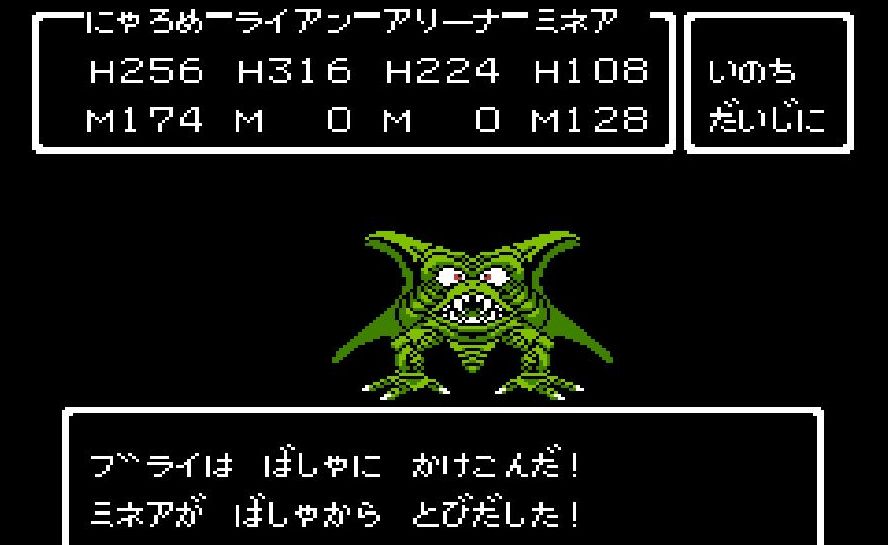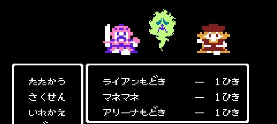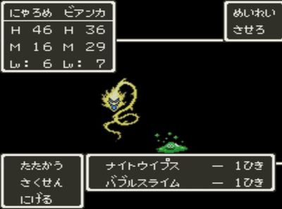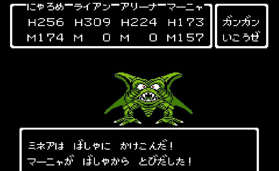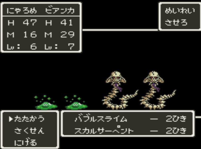 首尾良く「フバーハ」を唱えた後に、占い師・ミネアは踊り子・マーニャに交替。