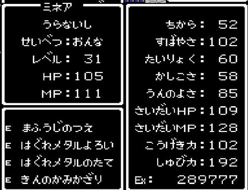 占い師・ミネアがレベル29にアップ。呪文「フバーハ」を覚える。