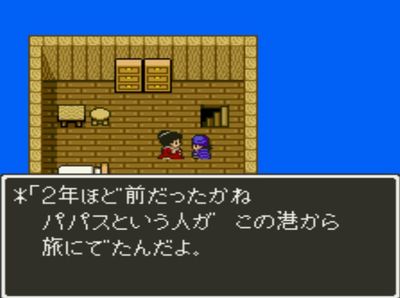 パパスがビスタの港の男と話し込んでいる間に、2階に登り男の妻と話す。